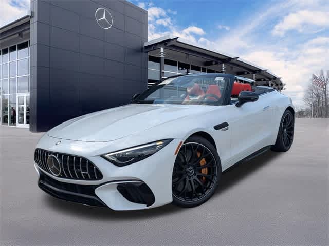 ABS brakes, AMGî Night Package, Apple CarPlayî, Apple CarPlayî/Android Autoî, Brake assist, Bumpers: body-color, Delay-off headlights, Driver Assistance Package, Exterior Parking Camera Rear, Front dual zone A/C, Heated & Ventilated Power Front Seats, Illuminated entry, Leather steering wheel, Nappa Leather Upholstery, Navigation System, Panic alarm, Power door mirrors, Remote keyless entry, Smartphone Integration, Speed control, Tachometer. Clean CARFAX. Moonlight White Metallic 2025 Mercedes-Benz SL-Class SL 63 AMGî S E Performance 4MATICî 4MATICî 9-Speed Automatic 4.0L V8